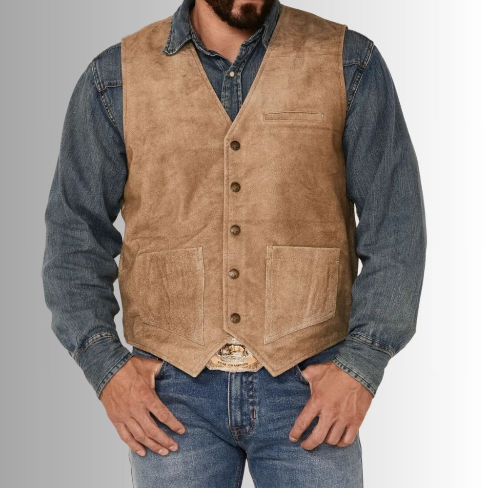 Veste En Cuir Sans Manche Homme - Marron Clair