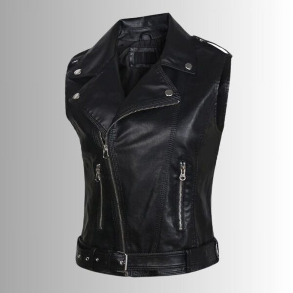 Gilet Cuir Biker Femme - Style Ceinturé