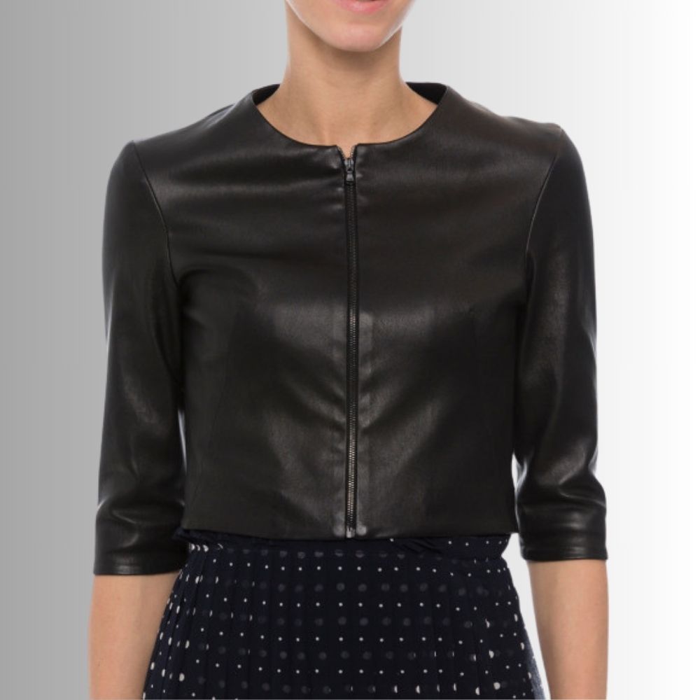 Veste Cuir Moto Femme - Style Court et Manches Courtes.