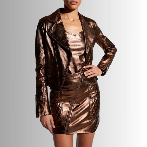 Veste Cuir Métallisé Femme - Style moto