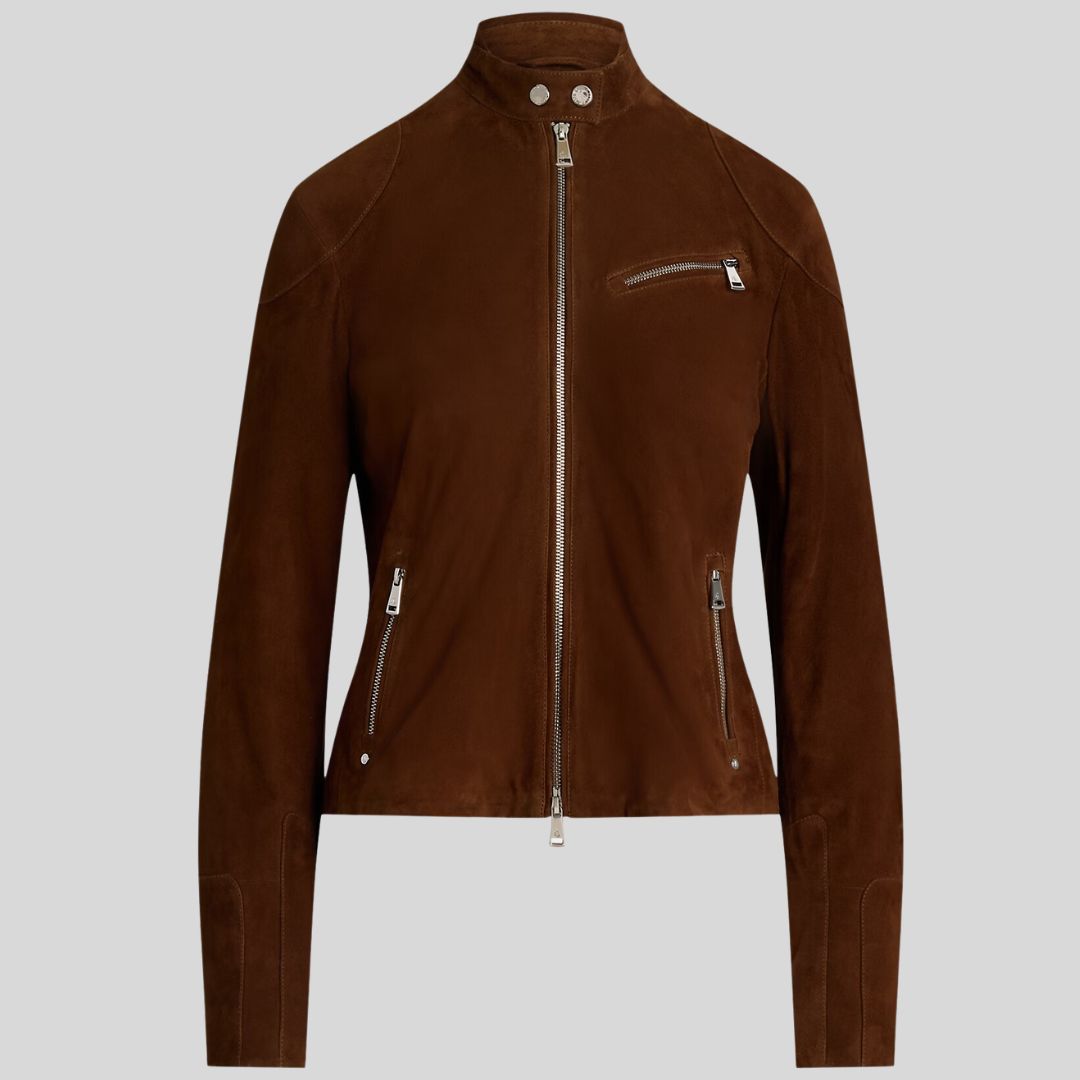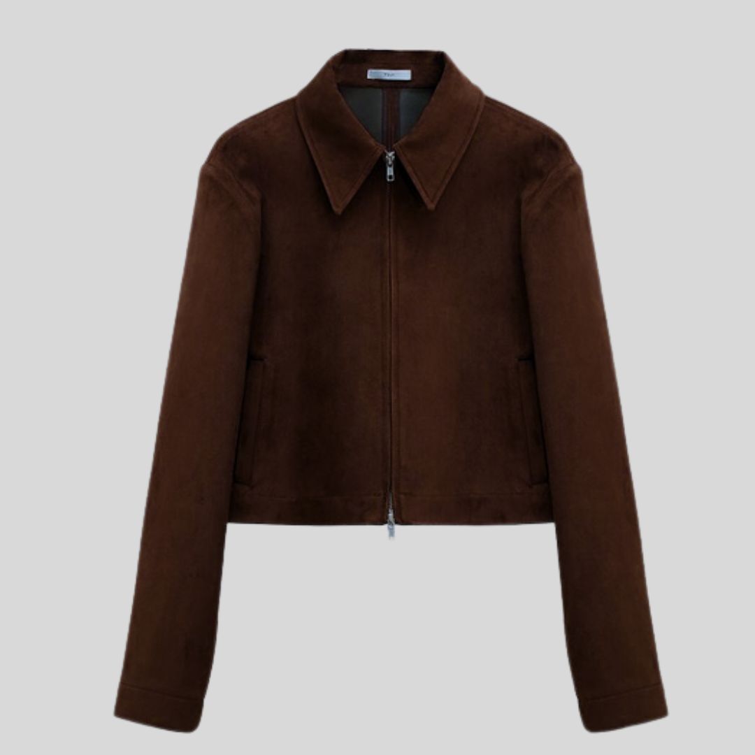 Raven Mocha – Veste Daim Marron Foncé Femme Courte à Fermeture Zippée