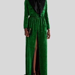 Porté avec une robe longue fendue ou un pantalon ajusté, ce blazer court en velours vert sublime toutes les silhouettes. Idéal pour les soirées formelles, les dîners élégants ou les événements exclusifs, il incarne la sophistication à la française.
