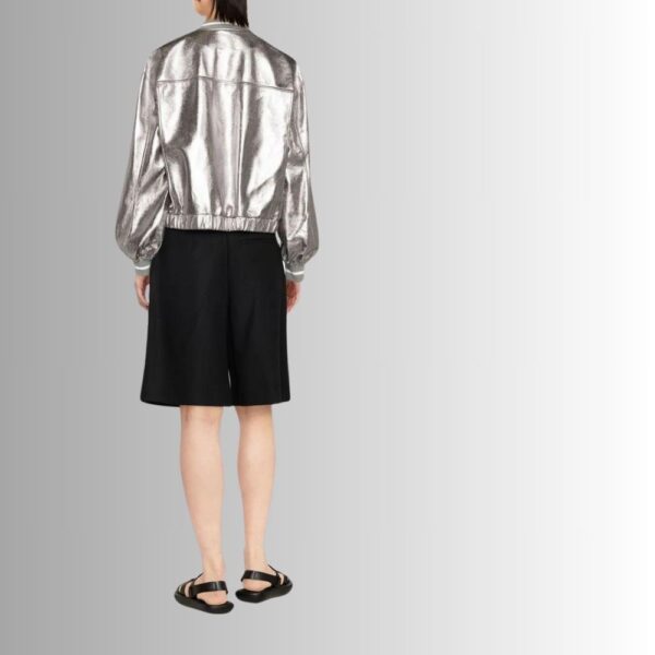 Découvrez notre blouson argenté pour femme, une réinterprétation audacieuse de la veste bomber classique. Arborant une teinte métallique argentée captivante, cette pièce est parfaite pour celles qui recherchent un look original et tendance.