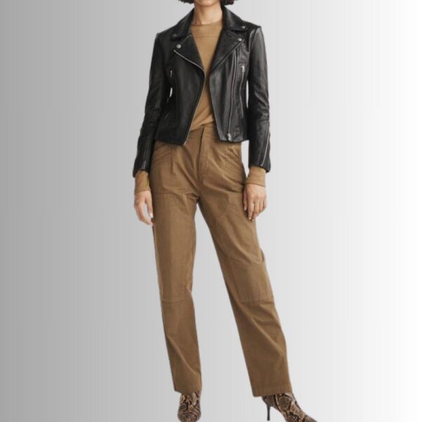 - Blouson en cuir noir au style biker pour femmes