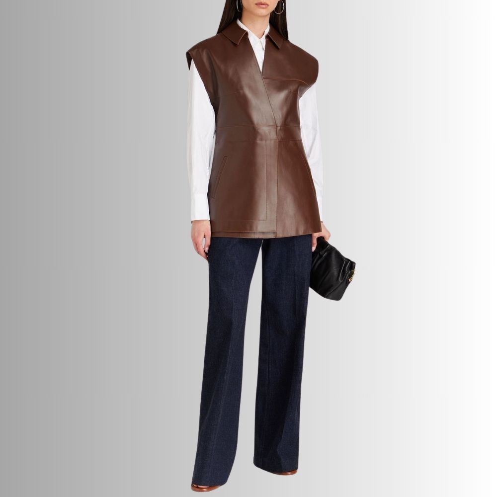 Gilet Cuir Marron Pour Femme – Élégant, Cuir Véritable
