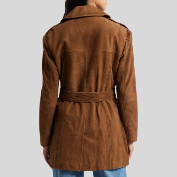 Les poches passepoilées à l'avant offrent une praticité discrète, et la ceinture amovible permet de souligner la silhouette selon vos envies. Fabriqué avec un cuir soigneusement sélectionné, ce manteau assure une durabilité exceptionnelle tout en offrant une texture douce et luxueuse. Idéal pour un style chic au quotidien ou des occasions spéciales, ce manteau court en daim marron est une pièce maîtresse de votre dressing.