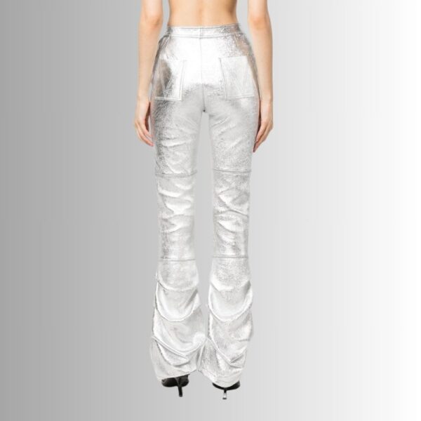 - Pantalon métallisé femme en cuir d'agneau