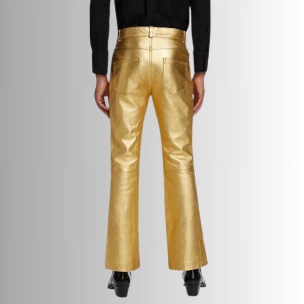 Découvrez notre pantalon cuir homme luxe, confectionné dans un luxueux cuir d'agneau au fini métallique. Ces pantalons Baker arborent une silhouette évasée pour une touche de style distincte et moderne.
