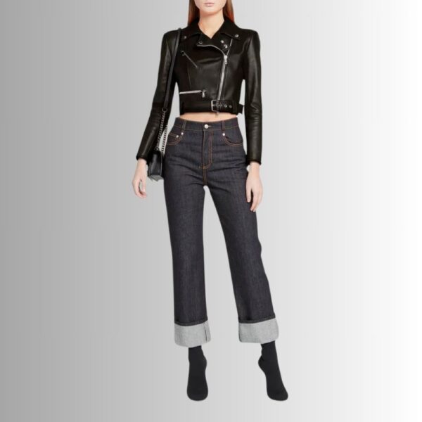 Le perfecto noir pour femme est l'essentiel de la garde-robe qui allie style et élégance. Ce blouson de motard raccourci en cuir d'agneau présente un col cranté distinctif et une fermeture à glissière asymétrique à l'avant pour une touche de modernité.