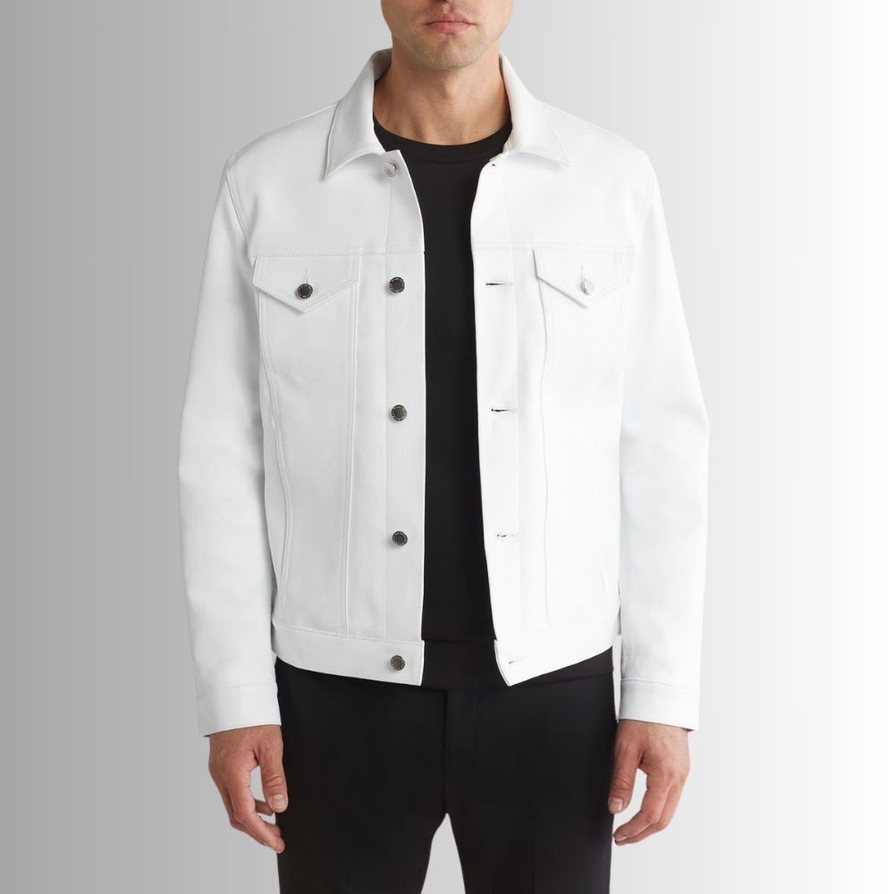 Blanc Camionneur – Veste cuir homme blanche – Style trucker moderne