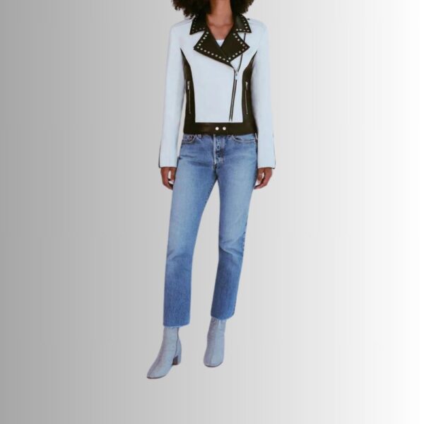 Veste Cuir Noir Et Blanc Pour Femme - Perfecto à l'occidentale