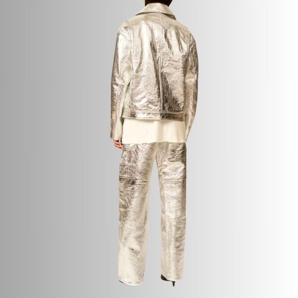 Veste En Cuir Effet Métallisé Pour Femme