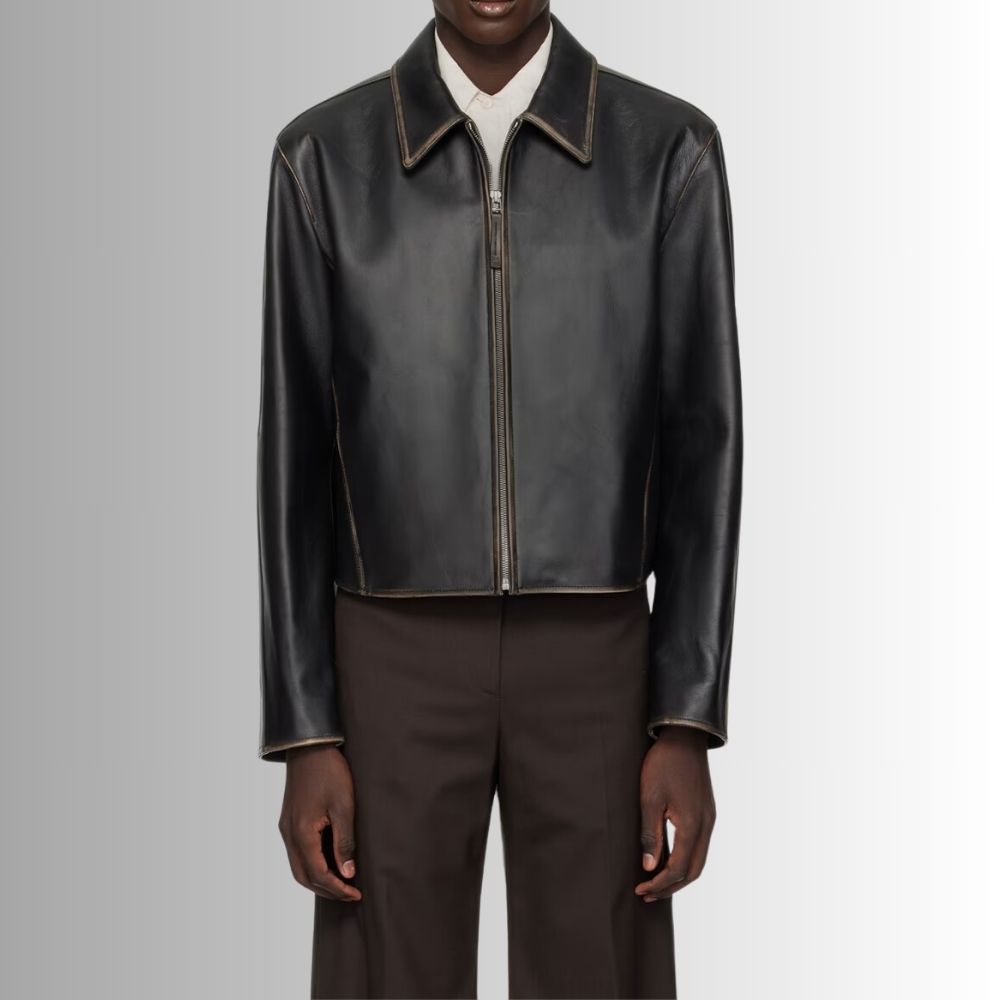 Noir Fade – Veste Cuir Noire Homme – Finition Délavée Luxe