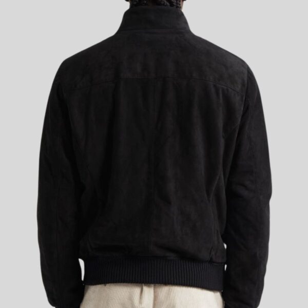 La veste en daim noir homme Noir Atlas allie performance et raffinement dans un design sportif chic. Réalisée en daim de chèvre noir haut de gamme, elle présente une silhouette bomber réinventée avec un col montant structuré, une fermeture zippée double sens et des finitions tricotées aux poignets et à la taille.