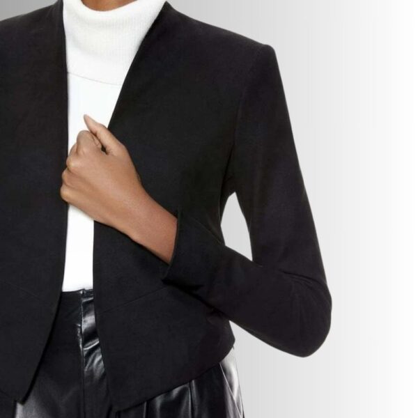 Découvrez notre veste femme en daim noir, idéale pour les températures fraîches de l'automne. Dotée de manches longues et d'une ouverture frontale drapée, elle offre une silhouette élégante et polyvalente. Fabriquée à partir de daim véritable à 100%, cette veste est entièrement doublée pour plus de confort et de chaleur.