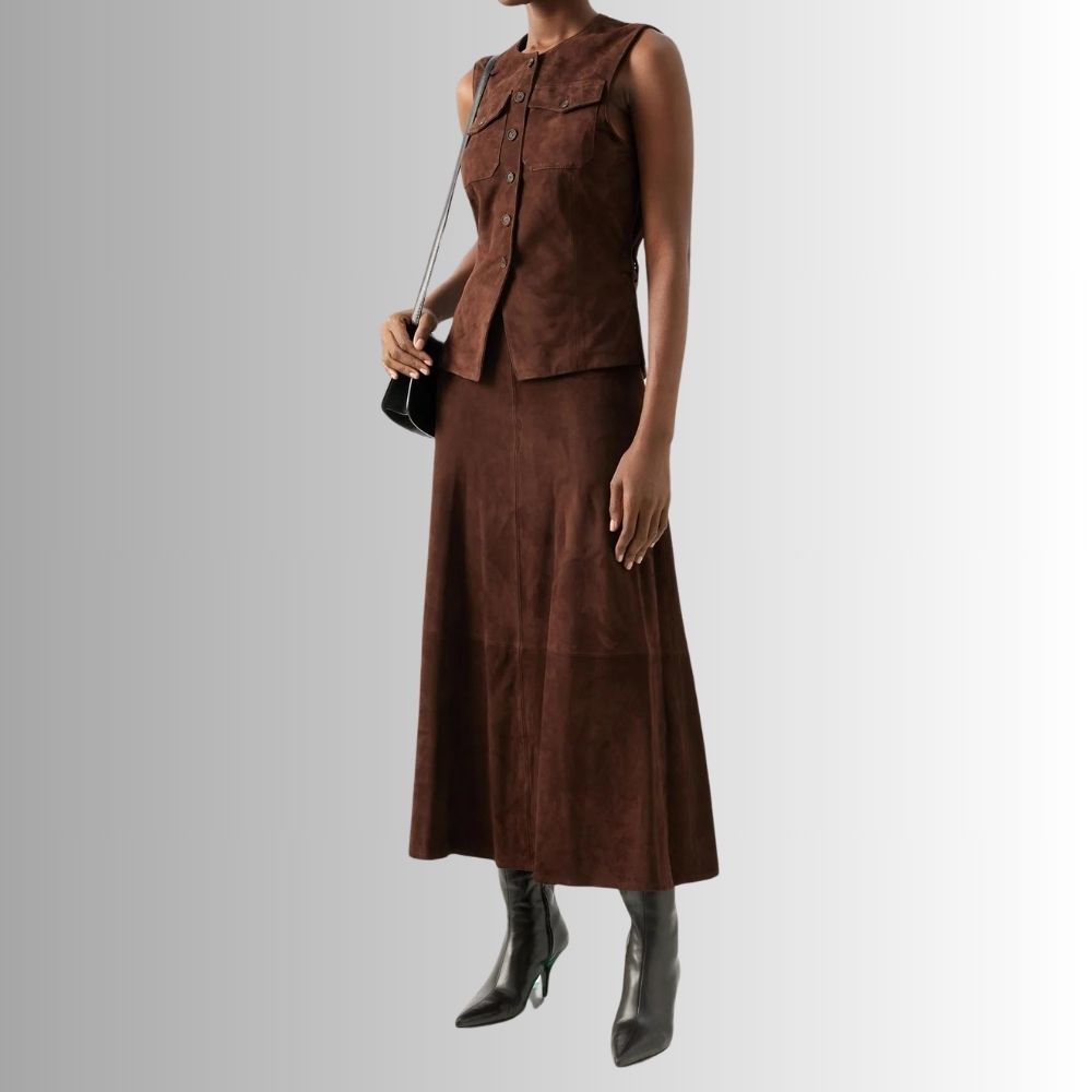 Disponible dans une teinte marron chaleureuse, cette veste en daim pour femme est un choix polyvalent pour toutes les saisons. Prenez soin de cette pièce en toute confiance auprès d'un spécialiste du cuir pour un professionnel de nettoyage. Profitez également de la livraison gratuite pour ajouter cette veste sans manches en daim à votre garde-robe dès aujourd'hui.